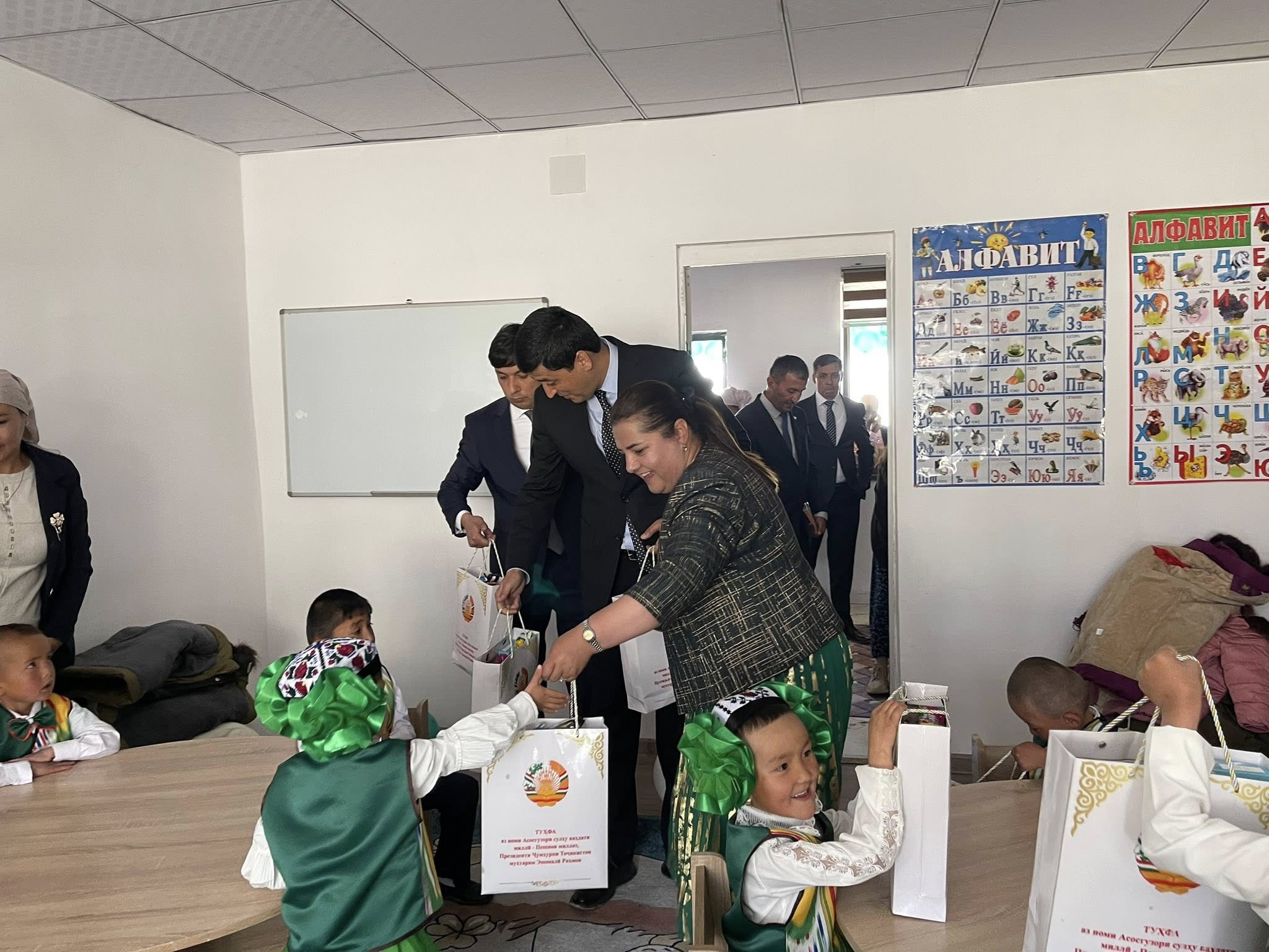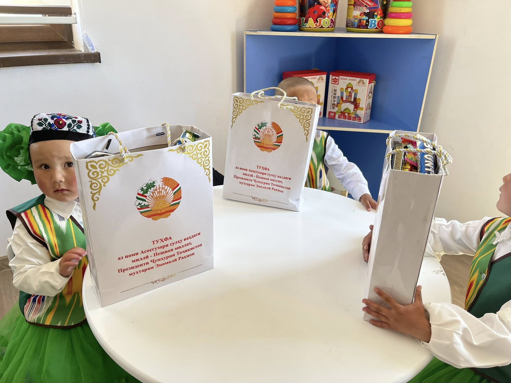 Ҳамчунин ба тарбиятгирандагони ин муассисаи мазкур туҳфаҳои Президенти Ҷумҳурии Тоҷикистон муҳтарам Эмомалӣ Раҳмон, ки аз сару либос иборат буд, аз ҷониби намояндагони ҳукумати кишвар тақдим карда шуд.